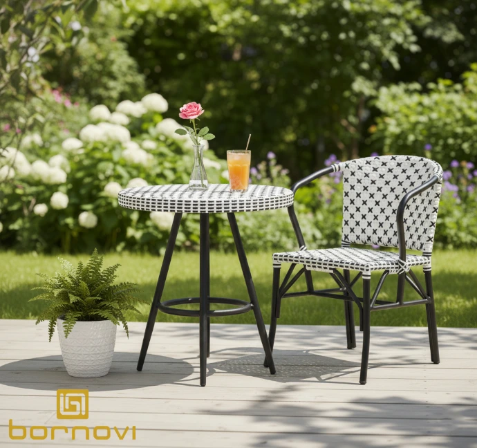 این میز زیبا و مقاوم، بهترین انتخاب برای فضای باز باغ و رستوران شماست. بدنهی سبک و مستحکم این محصول از آلومینیوم ساخته شده که مقاومت بالایی در برابر زنگزدگی و خوردگی دارد و به راحتی در برابر شرایط جوی مختلف دوام میآورد. سطح نشیمن و پشتی صندلی افرا که مناسب این میز می باشد از الیاف بافت ساخته شده است که علاوه بر زیبایی ظاهری، دارای خاصیت ضدآب و مقاوم در برابر تابش مستقیم خورشید میباشد.