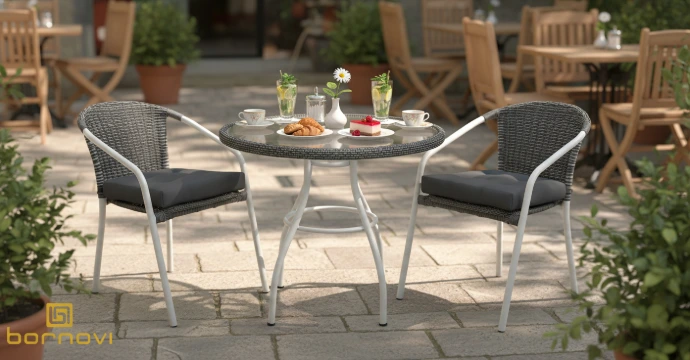 این میز زیبا و مقاوم، بهترین انتخاب برای فضای باز باغ و رستوران شماست. بدنه‌ی سبک و مستحکم این محصول از آلومینیوم ساخته شده که مقاومت بالایی در برابر زنگ‌زدگی و خوردگی دارد و به راحتی در برابر شرایط جوی مختلف دوام می‌آورد. سطح نشیمن و پشتی صندلی رز که مناسب این میز می باشد از الیاف بافت ساخته شده است که علاوه بر زیبایی ظاهری، دارای خاصیت ضدآب و مقاوم در برابر تابش مستقیم خورشید می‌باشد.